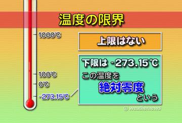 私たちのまわりにはたくさんの温度があり、生活に密接にかかわっています。例えば、天気予報で発表される予想気温は空気の温度、風邪をひいたときに測るのは体温です。人間の平熱は36度くらいですが、太陽の表面温度は約6000度もあります。このように温度は理論上、上限はないと考えられています。一方、下限は決まっており、その温度はマイナス273.15度です。この温度は、理論上では熱が全く存在しない状態で「絶対零度」と呼ばれています。過去に実験によって、絶対零度の世界を作り出そうとしましたが、実際にその温度にまで到達できたことはありません。それにしても、マイナス273.15度という世界は想像すらできませんね。