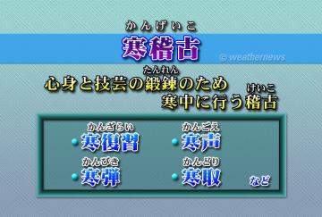「寒の内」は、一年で寒さがもっとも厳しい時期です。日本には古くからこの寒さの中で猛烈な練習を行う「寒稽古(かんげいこ)」という慣習があります。