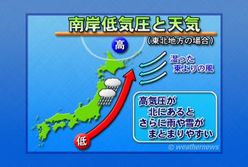 東北地方の太平洋側においては、南岸低気圧が三陸沿岸に迫るほど雨や雪は降りやすくなります。