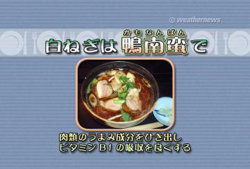 かぜをひいたときには、旬の白ねぎを使って鴨南蛮(かもなんばん)はいかがでしょうか。