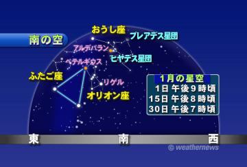 1月の南の空を眺めると、冬の星座の中でも特に明るい「おうし座」を見つけることができます。