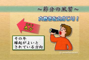 言い伝えによれば、この風習は江戸時代の末期に大阪で生まれ、商人の間で盛んになったものだといいます。それがここ2、30年で節分の風習として全国に広がりました。