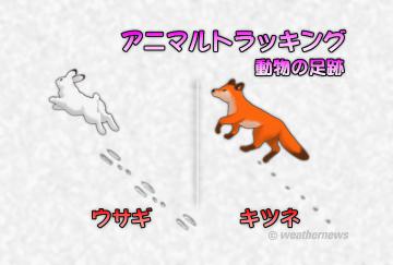 雪原に点々とついた動物の足跡を見たことはありませんか。野生動物の跡を追い、その生態を観殺調査することをアニマルトラッキング(ANIMALTRACKING)といいます。厳しい冬をどう乗り越えていくかは、動物たちにとって大きな問題で、その生態は専門家にとっても未知の世界に包まれています。動物たちの活動が鈍る冬の季節はなかなかその姿を見ることができなくなりますが、雪の上についた足跡がその存在を教えてくれます。ただ、実際に足跡からその動物が何であるか判断するのは難しく、動物の生態を知ることが重要になります。アニマルトラッキングは、一種のレジャーにもなっていて、専門家が野山を案内する行事も各地で開かれています。また、平地でも雪が積もった次の日は、小鳥や犬の足跡がついていますので、身近なところでもアニマルトラッキングを楽しむことができます。