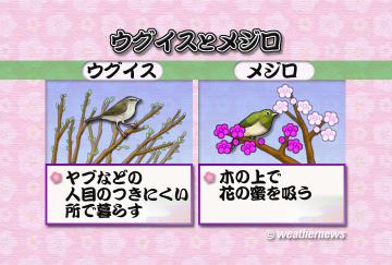 取り合わせのよいことのたとえで「梅にウグイス」といいますが、これはウグイスとメジロを見違えたのではないかという説もあるようです。