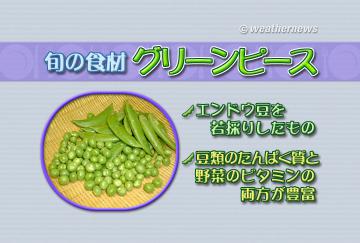 春は野菜のおいしい季節です。店頭には、春キャベツに新タマネギ、新じゃがなどがでてきています。その中にはグリーンピースもあります。グリーンピースはえんどう豆が完熟する前に収穫した豆のことで、料理にアクセントをつける彩りとして使われることが多いようです。グリーンピースはマメ科の植物で豆類に分類されているほかに、野菜類にも属しています。そのため、豆類に多く含まれるタンパク質と野菜のビタミン類の両方が含まれており、栄養価の高い食材といえるのです。いつもは気持ち程度に添えられているグリーンピースも旬の時期にはたくさん食べたいものですね。