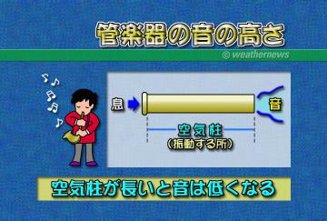 私たち人間は昔から音を出して情報を伝えたり、楽器などを使って音楽を楽しんだりしてきました。現在も私たちは音とはきってもきれない生活をしていますが、意外にも音の本質については知らないものです。音は空気の振動によって伝わることは多くの方が知っていると思いますが、では、音の高さはどのようにして変化するのでしょうか。フルートやトランペットなどに代表される管楽器を例にとってみてみましょう。管楽器の一方の口から息を吹きこむと、反対の口から音が出てきます。「息」という空気の流れが「音」になるとき、唇や楽器の「発音体」とよばれる部分が振動します。すると、管楽器の中の「空気柱(くうきちゅう)」とよばれる管の中の空気も振動します。空気柱の中では、空気が行ったり来たりを繰り返しており、空気の濃い部分と薄い部分を作り出しています。こうした空気の振動は、一般に振動する空気柱が長いほど低い音を出します。管楽器には様々な種類があり、音の高さを変える仕組みもそれぞれですが、いずれも空気柱の長さを変化させる原理を利用しているのです。